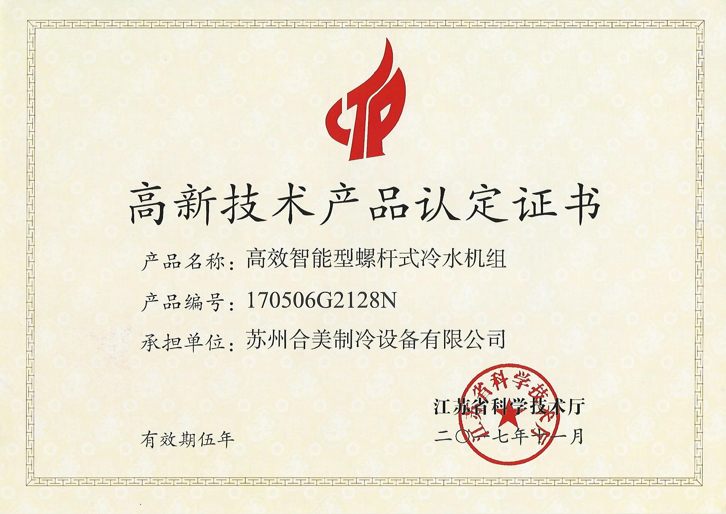 高新技術產品認定證書